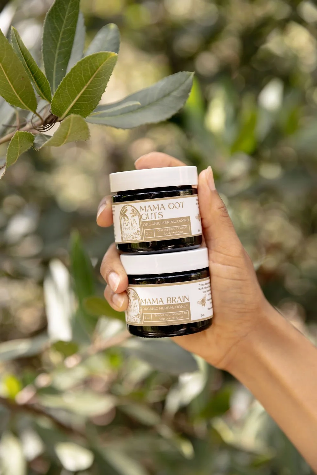 Our Natural Medicine Cabinet "Mama Got Guts" Herbal Honey Oxymel $26.00 "Mama Brain" Herbal Honey $26.00 "Mama Moment" Herbal Supplement $33.00 "Mama Immunity" Herbal Supplement $33.00 "Mama Nourished" Tea Infusion $29.00 "Breathe Easy, Speak Easy" Tea Blend $26.00 "Nature's Multi" Tea Infusion $29.00 "Flowers for Me" Tea Blend $26.00 "Nature's Medicine Cabinet" Bundle Sale Price: $200.00 Original Price: $228.00 Sale Ama Healing E-Gift Card from $25.00